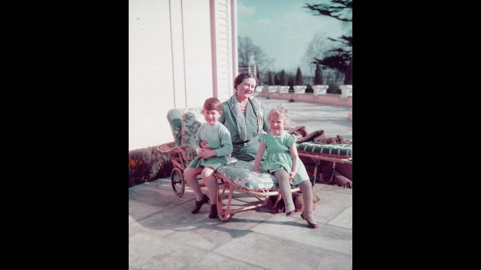 伊丽莎白王太后(伊丽莎白二世的母亲)与她的外孙和外孙女,1954年。 -