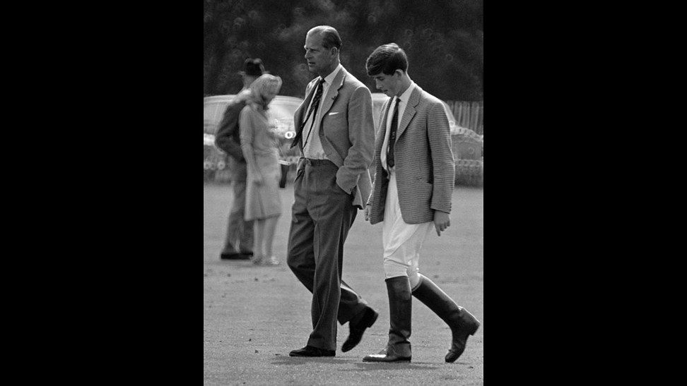 1965年,查尔斯王子与父亲在一场马球赛上。他打小就是热心的马球爱好者,直到2005年才不再打马球。 -