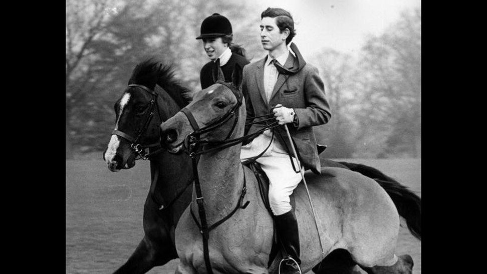 1969年4月,查尔斯王子与他的妹妹安妮公主在温莎城堡(Windsor Castle)一起骑马。 -