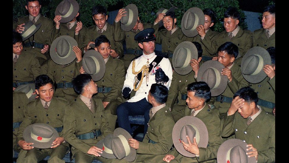 1997年,在中英移交香港主权之前,王子看望了英军的廓尔喀人士兵。廓尔喀人来自尼泊尔,曾大批加入英军被派驻到亚洲的一些英国殖民地。在香港他们被称为“啹喀兵”,查尔斯王子的长子、直系王位继承人哈里王子就曾在廓尔喀人部队中受训。 -