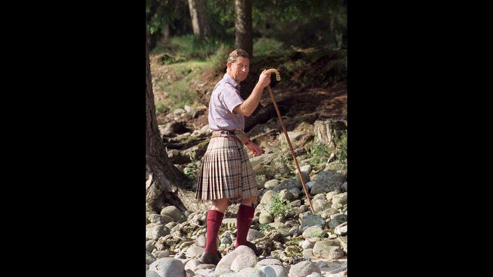 查尔斯王子还拥有代表苏格兰王储的“罗思塞公爵”(Duke of Rothesay)的头衔。图为穿着苏格兰传统方格裙的查尔斯王子。 -
