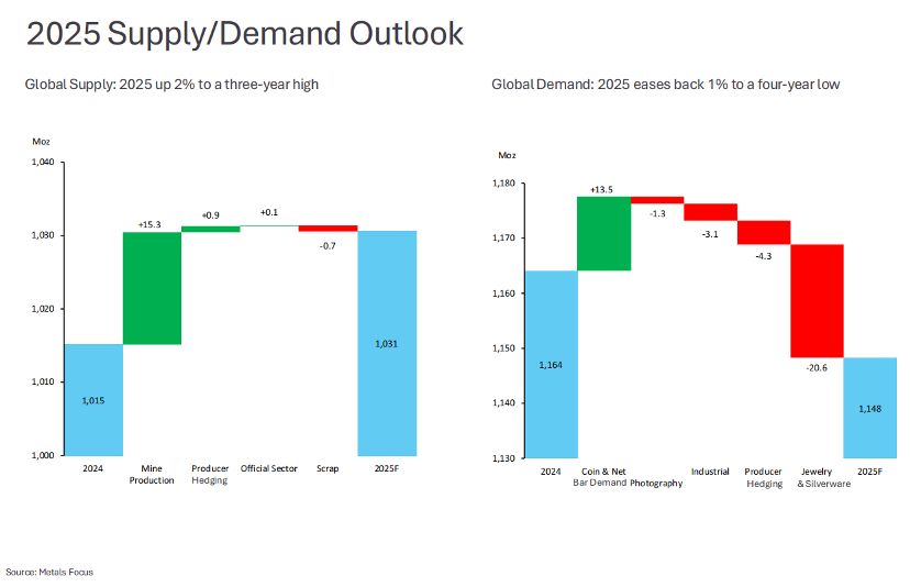 矿山供给方面,银协及多家机构研究显示,约七成银矿产量来自铜、铅、锌和金矿的副产品,以银为主的矿山产量占比不足三成。这一生产结构决定了银价上涨对产量的拉动作用有限:即便银价大幅攀升,若铜、铅、锌等主产金属不启动扩产,白银副产量也无法同步增长;同时,新建矿山通常需要8–15年的周期,2025年的高价格无法改变2028–2035年前的产能格局。再生银方面,理论上高价会刺激废料回收和再生银产量增长,但现实中存在多重掣肘:回收体系集中在少数地区,大量分散小额持有即便在高价下也难以立即变现;环保监管要求、工艺技术瓶颈及利润空间限制,均使得再生产能无法成为“拉闸就开”的快变量,而是带有明显滞后性的缓变量。综合来看,2025年白银供给端呈现“硬约束+低弹性”特征,价格大涨并未带来对应级别的增产。